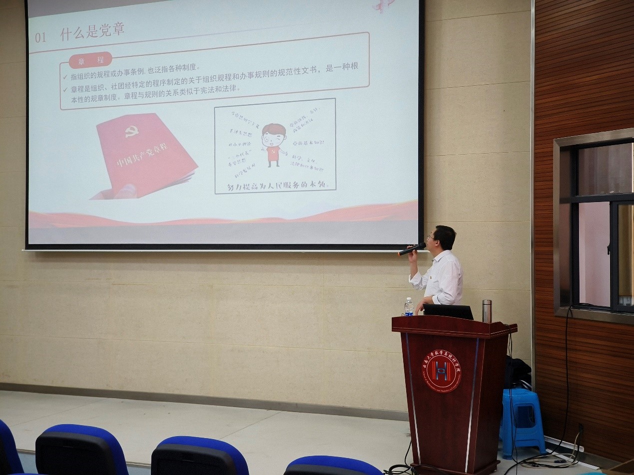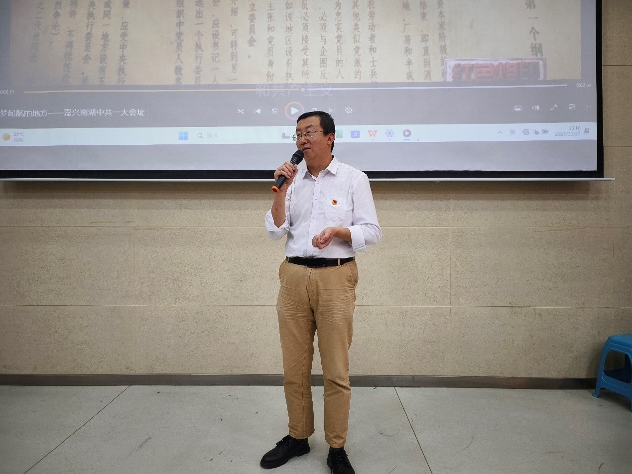 邓启贵副处长带领大家从三个方面解读二十大的《党章》修订,首先是“什么是《党章》”,从党章的由来说起,为大家讲述了中共二大时期的故事即《党章》的发源,以及中共一大时《党章》的雏形。随后,观看了《党章》发展历史的专题纪录片。最后,邓启贵副处长列出了二十大《党章》修改的九个要点,逐点进行讲述分析,让大家对于《党章》有了更深一步的了解。