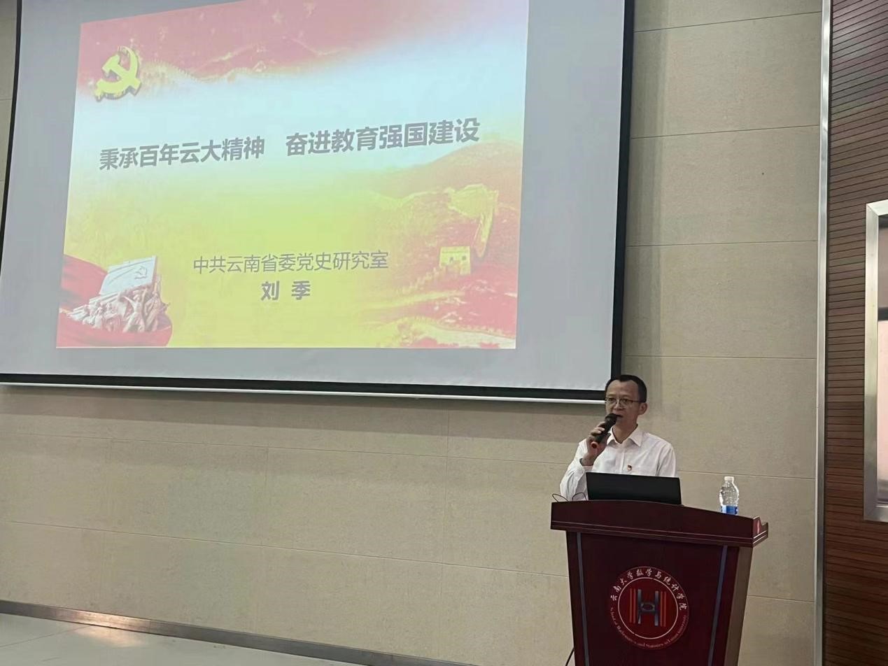 2023年10月20日,beats365唯一官网入口官网邀请到中共云南省委党史研究室刘季处长,在格物楼3103报告厅开展2023年beats365唯一官网入口官网分党校“万名党员进党校” “秉承百年云大精神,奋进教育强国建设”党员培训。公司党委书记徐瑾主持本次培训。