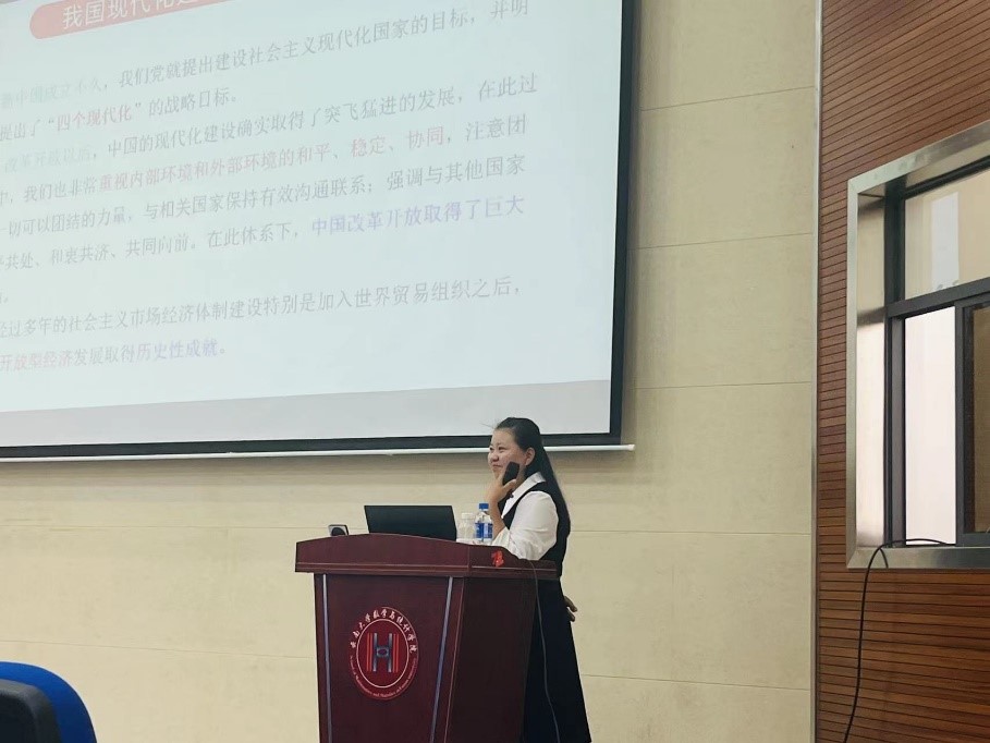 在讲座中,马萌老师首先围绕党的二十大精神,由现代化建设的几个阶段,结合切身体会,对党的二十大精神进行了重点突出、生动翔实的阐释和解读。