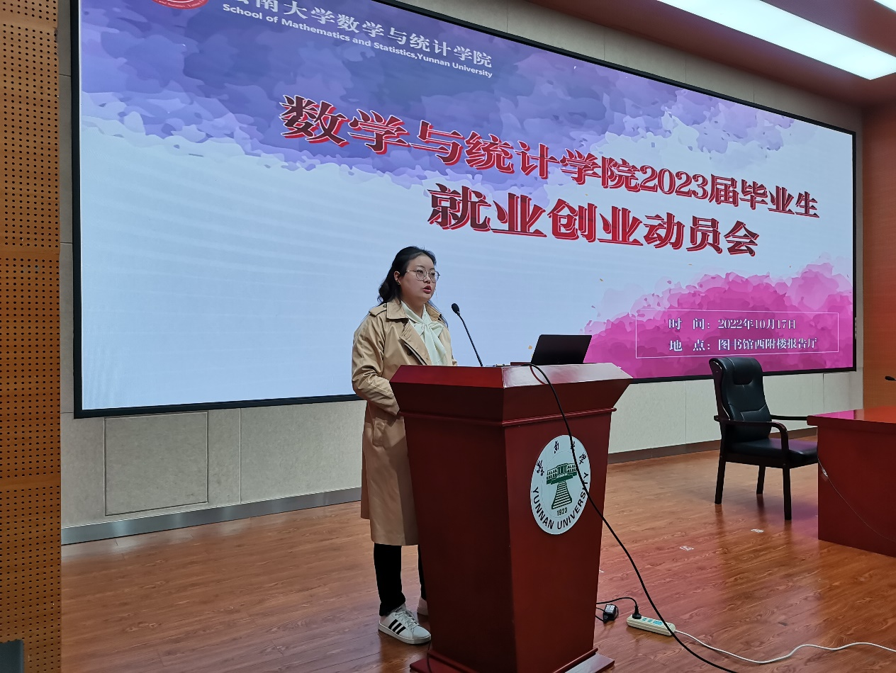 高校毕业生就业工作是教育领域重要的民生工程。为落实习近平总书记关于加强老员工就业的指示精神和国务院关于稳就业的系列通知要求,切实推进公司毕业生升学、就业与创业工作,2022年10月18日13:00,beats365唯一官网入口官网于图书馆西附楼一楼报告厅举行了数统公司2023届毕业生就业动员会暨征兵动员会。会议由公司王蔓琦老师主持,公司党委副书记杜芳芳老师出席,全体2023届本科毕业生、研究生毕业生积极参与,认真倾听。