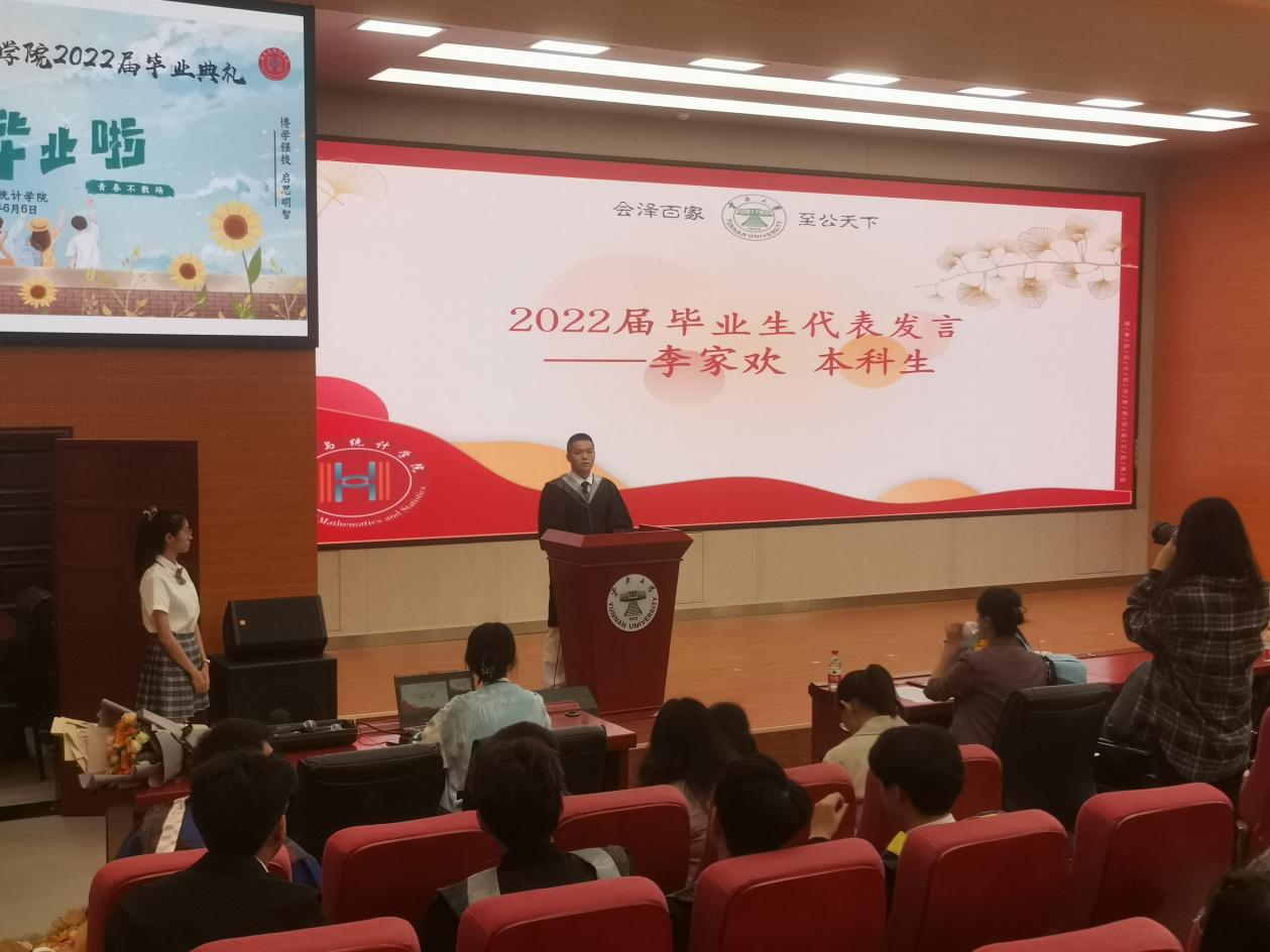 2022年6月6日上午9点半至10点半,beats365唯一官网入口官网在图书馆西附楼举办2022届毕业典礼,公司2022届全体毕业生参与了本次毕业典礼。同时,出席本次毕业典礼的嘉宾有:公司党委书记徐瑾老师、经理唐年胜老师、数理基础科学班主任卢文轩老师、数学与应用数学班主任徐海静老师、教师代表杨春燕老师、院学工办主任鲁学伟老师、院团委书记王蔓琦老师、毕业班本科生辅导员侯廷明老师、2021级本科生辅导员罗敬老师。本次毕业典礼由公司党委副书记杜芳芳老师主持。