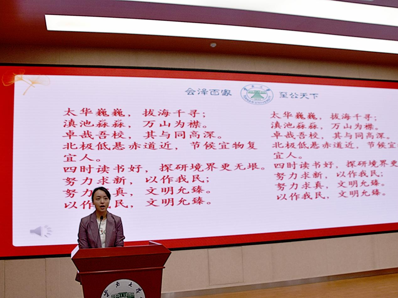 研究生毕业生代表张思杰在发言中回忆了自己在云大的学习生活,向老师和同学们告别,祝愿在场员工在母校的培养教导下踏上人生新的征程。
