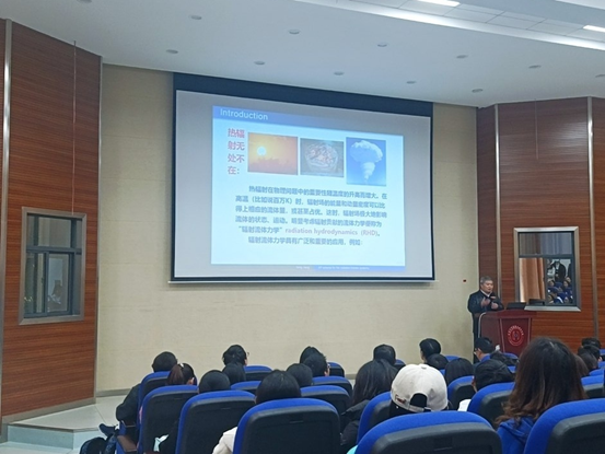 江松院士以“Asymptotic preserving schemes for radiative transfer systemes”(辐射输运方程组的渐进保持格式)为主题,介绍了热辐射在物理中的重要性,引出了辐射流体力学这一概念,进而讲解了辐射流体力学广泛的应用。同时,江松院士深入浅出地讲解了核聚变中的一个重要方程式的求解,员工们受益匪浅。