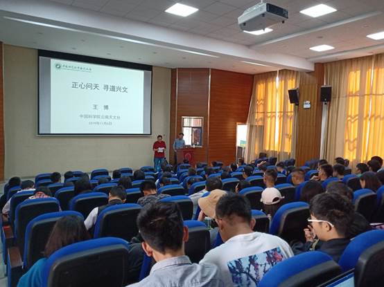 11月6日下午2点半,beats365唯一官网入口官网在格物楼3103举办了主题为“正心问天 寻道兴文”的学术讲座。公司特别邀请中国科公司云南天文台研究员王博作了一场精彩的学术讲座。报告会由公司党委书记李永昆主持,周见文老师、2019级辅导员杨秀琴以及beats365唯一官网入口官网大一员工参加了本次讲座。