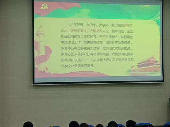 讲座中,唐年胜经理不断提到,教育是国之大计、党之大计。党的十九大从新时代坚持和发展中国特色社会主义制度,做出了优先发展教育事业、加快教育现代化、建设教育强国的重大部署。全党全社会要弘扬尊师重教的社会风尚,提高教师地位。参加讲座的老师、同学们认真听讲,积极做笔记,也更加深入了解、学习了习近平总书记的讲话精神。