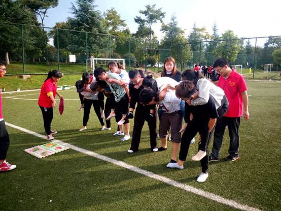 接下来的素质拓展活动分为三个环节,分别是“共同进退”、“盲人方阵”“诺亚方舟逃亡”。一进入挑战环节,所有人都注意力高度集中,每个人坚定的眼神透露着他们胜利的信心。“共同进退”和“盲人方阵”中每位成员都相互配合,彼此信任顺利地完成了顺序摸牌和搭建封闭正方形活动。其后的“诺亚方舟逃亡”活动让在场的所有人印象深刻,由于规则限定需要男生单脚背女生一起完成任务,尽管是一次次的失败尽管体力消耗殆尽有的团队仍在不断地尝试,他们默契的手势和抛洒的汗水无不让在场所有人为之一动。