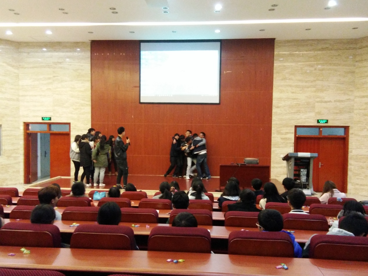 为了让培训充满趣味,培训中加入了游戏环节。引起现场反响最大的游戏就是“吃巧克力棒了”,两个人从巧克力棒的两端一起吃,剩余部分最短的则胜利。最后是由外国语公司外联部部长带来的经验之谈了,拉赞助时签合同要保持警惕以免上当受骗,还要做好落实、反馈等一系列工作。台上的部长们讲得津津有味,台下的干事们都在认真记笔记,玩游戏时大家也都积极参加。
