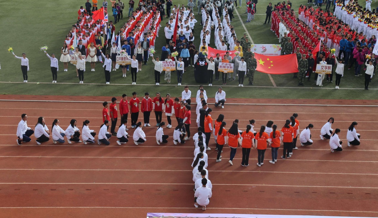 公司师生代表队衣着整齐划一、以饱满的精神面貌入场,员工方阵在经过主席台时队形变换创意十足,整齐的脚步声和口号声将体育精神展现无遗。各公司代表队到位后,裁判依次入场。此时,奏国歌,大家热情洋溢,声音洪亮。在主持人介绍完出席嘉宾后,紧接着,王建华副董事长致开幕词,他表达了对此次运动会的期望并表示希望全体同学能够将体育精神发扬下去。接下来,裁判员代表体育公司刘正之宣誓,旨在保证坚持公平公正的原则。运动员代表经济公司王鹤颖宣誓,并表示参加此次运动会的同学一定都会积极对待。最后,董事长林文勋宣布运动会开幕。