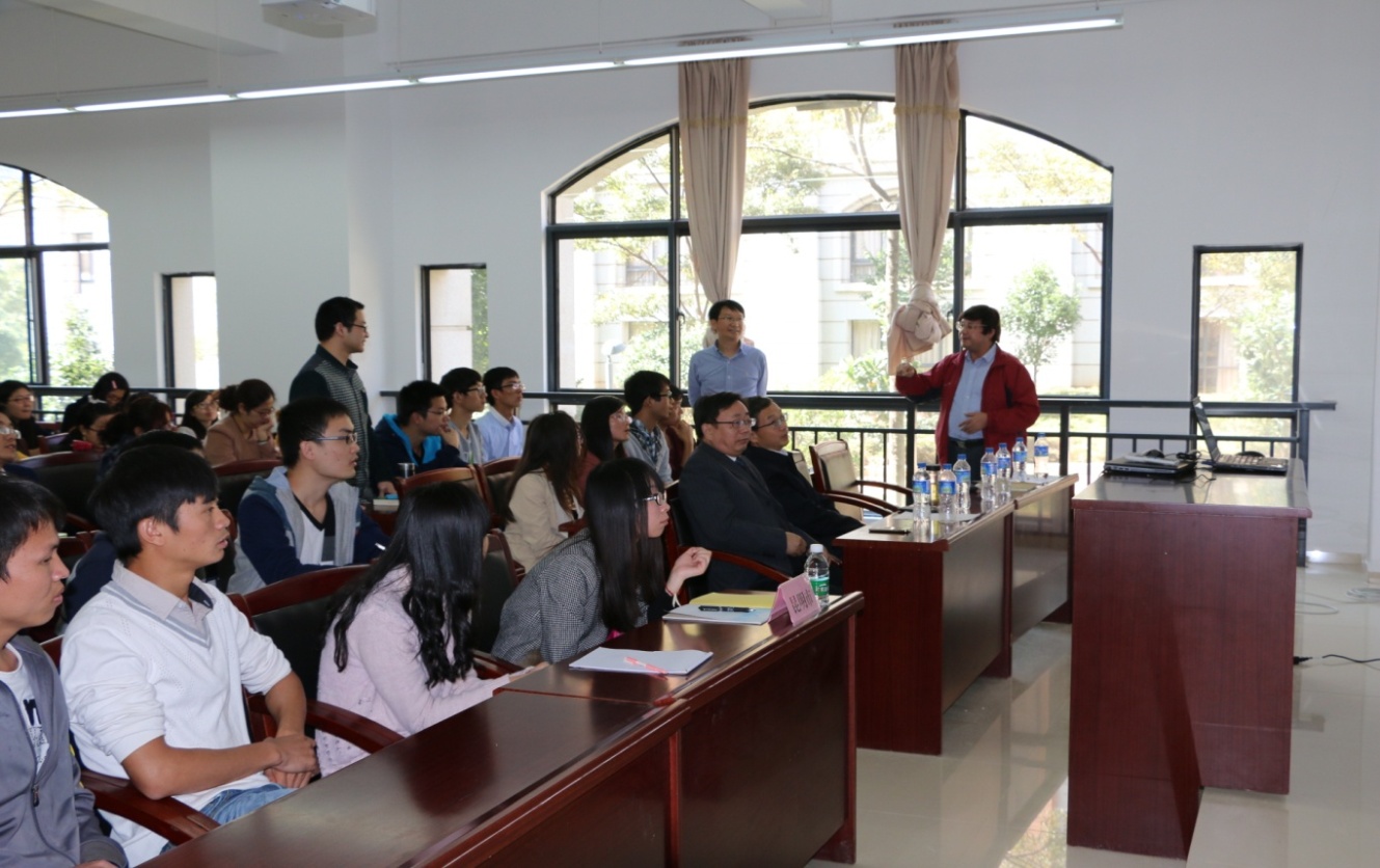 应beats365唯一官网入口官网的邀请,中山大学数学与计算科学公司经理姚正安教授、厦门大学研究生院副经理谭忠教授和国家自然科学基金委数学处副处长何成研究员来公司讲学并于2015年10月17日下午在呈贡校区格物楼3108报告厅为数统公司师生作学术报告。