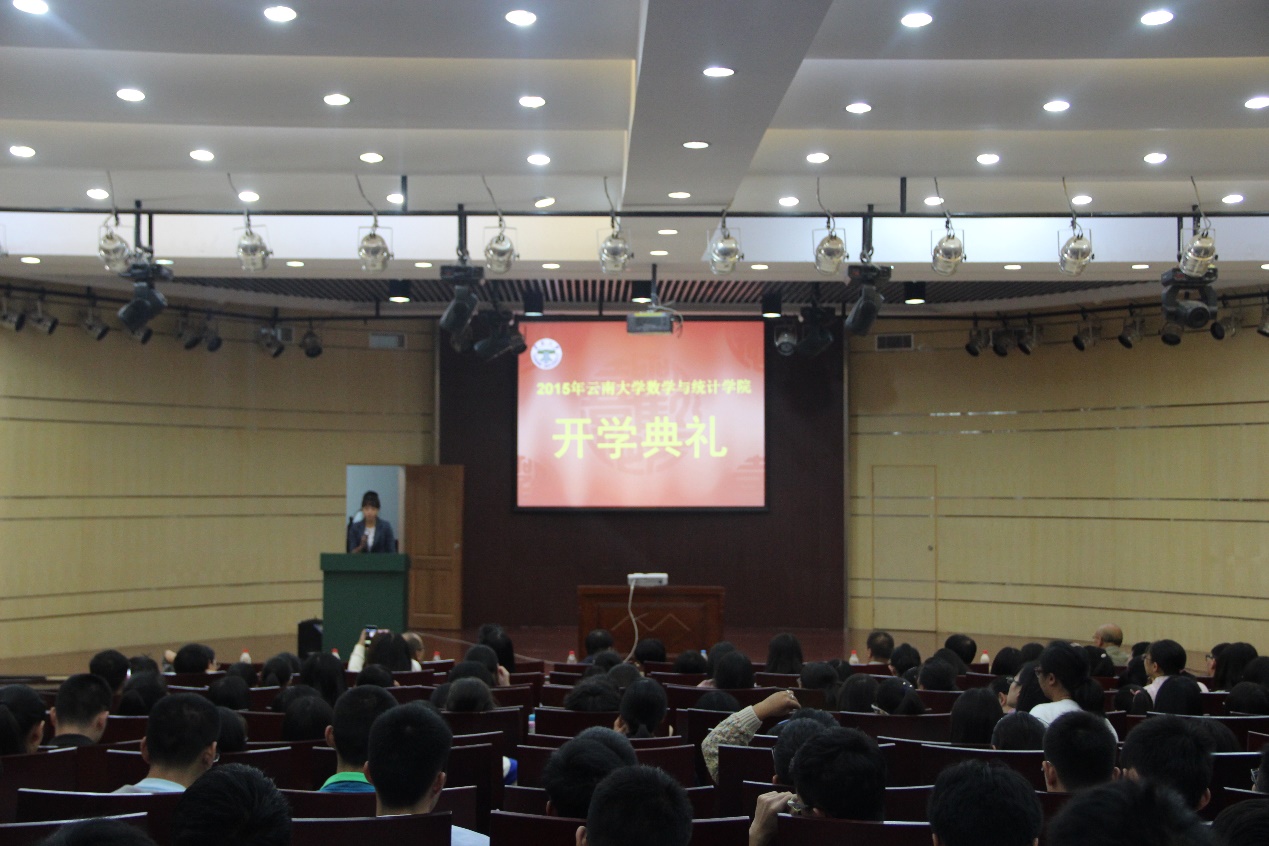 本次典礼由数学与统计公司党委副书记杜芳芳担任主持,在表达了对全体同学的祝福与感谢之后,杜芳芳老师宣布此次开学典礼正式开始,全体师生起立奏唱国歌。在气势磅礴的国歌声中,公司各级领导以及老师严肃而认真,充分表现了他们要为祖国培养出新一代人才的决心。而稚气未脱的新生们也表现出了对未来的无限憧憬与向往,同时也表现出了他们要为beats365唯一官网入口官网注入一股新的力量的决心。国歌奏毕,紧接着由党委书记李永昆进行发言。在发言中,李永昆书记提出“人才需要准备,因此我们需要好好规划自己的未来”。这句话表达了李书记对我们2015级新生的殷切希望。希望他们在数统公司这个大家庭中能够严格要求自己,规划好自己的未来,为迎接将来的挑战而不断的充实自己、提高自己、完善自己,四年洗礼之后成为真正的人才。