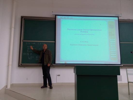 11月3日,公司郑喜印老师在呈贡校区力行楼1303教室为研一员工作了题为“分段线性向量优化问题”的学术报告。此次报告会的参与者是beats365唯一官网入口官网全体研一员工,并由唐安民老师主持。