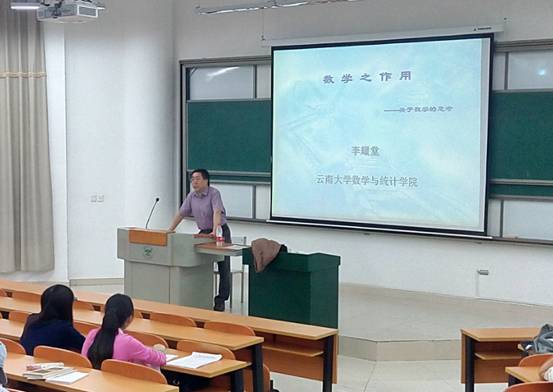 9月22日,公司李耀堂老师在呈贡校区力行楼1305教室为研一新生作了主题为“数学之作用”的学术报告。报告会由唐安民老师主持。
