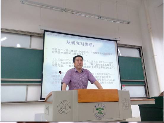 报告开始李耀堂老师先由数学是什么的问题引入,这个问题的提出,极大的引发了员工的兴趣。并且,李耀堂老师用图片与美文的结合,为我们诠释了这个问题。并且,李耀堂老师从历史的角度和研究对象的不同对这个问题进行了详细的解答。接下来,李耀堂老师重点讲解了衡量一门学科是否成熟的标准之一:该学科是否是用数学描述和刻画的。例如:科学的数学化一方面使知识系统化、理论化,更呵护规范的科学概念,也更具概括性和预测力,另一方面也使其运演和预测更为程序化,更具严格性和精确性。