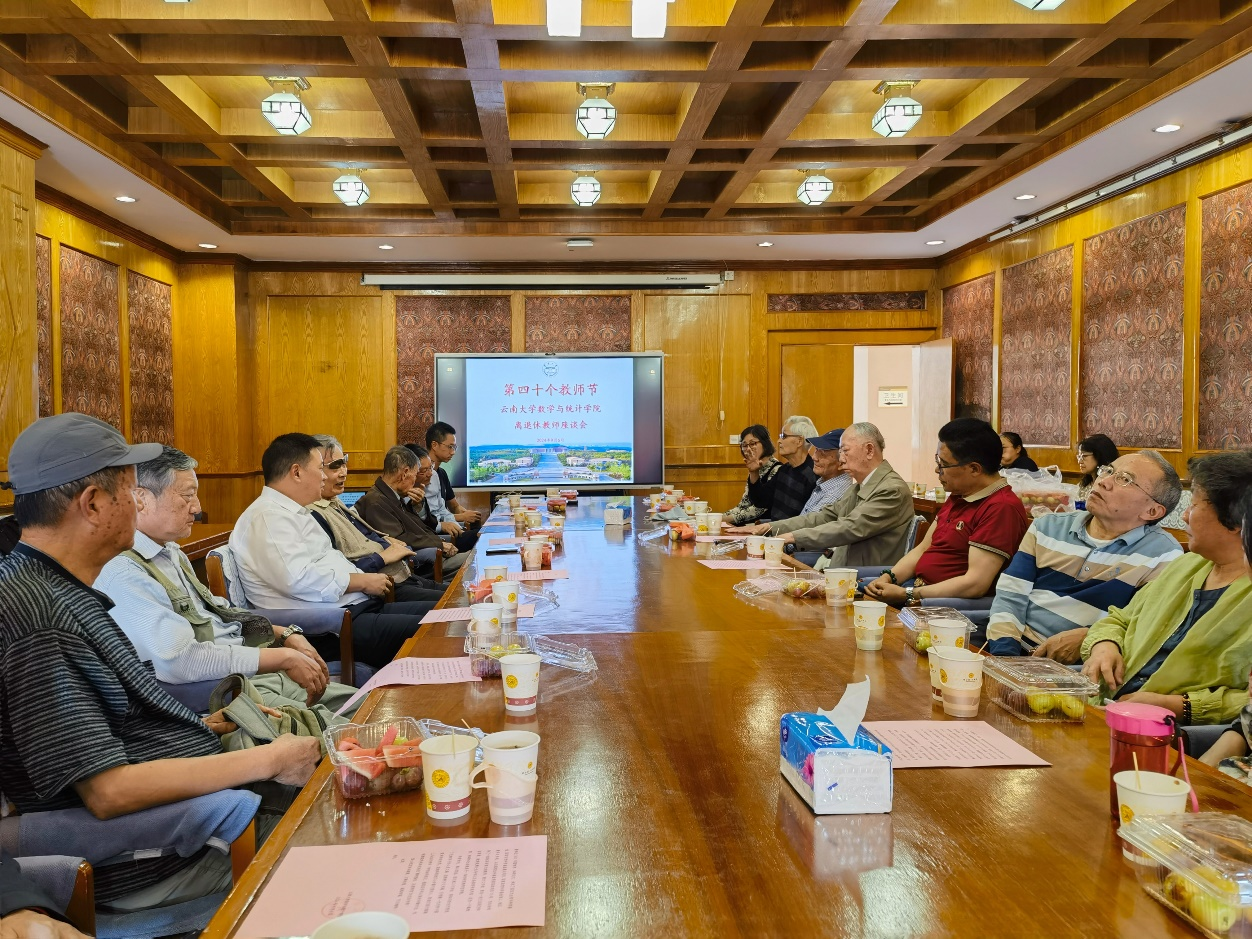 2024年9月6日,在第40个教师节来临之际,beats365唯一官网入口官网召开第四十个教师节离退休教师座谈会。王学仁等18位老领导、离退休教师,公司党委常委、副董事长、beats365唯一官网入口官网经理唐年胜, 数学与统计公司党委书记徐瑾、副书记杜芳芳、副经理杨汉春、潘东东等参加了会议。徐瑾主持会议。