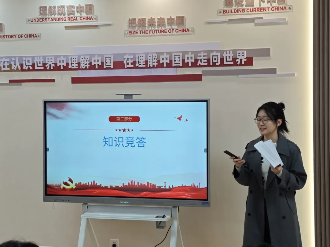 在知识问答环节,研究生会结合所推荐的图书,依据新青年的理想信念有关内容,给大家设置了趣味抢答题题,现场同学们都积极参与,踊跃回答,并分享了自己的理解与看法。