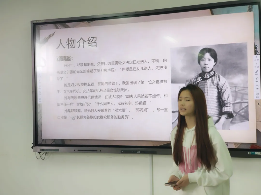 邓颖超的往来书信、秋瑾的诗词之声和谢冰莹的革命之路,都让我们深深感受到了女性革命家们坚韧不拔的精神和无私奉献的态度,她们为革命事业做出了不可磨灭的贡献。听完了同学们的分享,大家都有了不少的收获,于是一场知识竞答开始了。主持人提出一系列有关女性革命的问题,同学们以小组为单位积极地进行抢答。