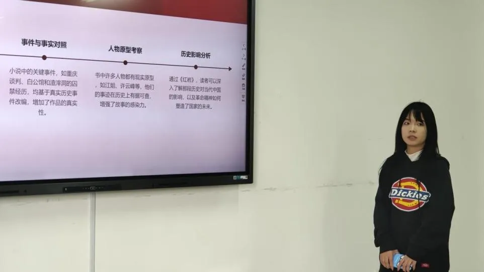 曾静同员工动讲述了1949年前重庆中美合作所集中营中革命者与反动派的生死斗争,展现了革命志士为真理而战的坚定信念,引发强烈共鸣。一位同学感慨道:“从《红岩》中,我们深刻感受到先辈们的无畏精神,这激励着我们珍惜当下,勇担责任。《平凡的世界》也受到同学们的追捧,三位分享者通过讲述孙少安、孙少平的奋斗故事,让大家体会到普通劳动者在逆境中追求自我完善的伟大力量。