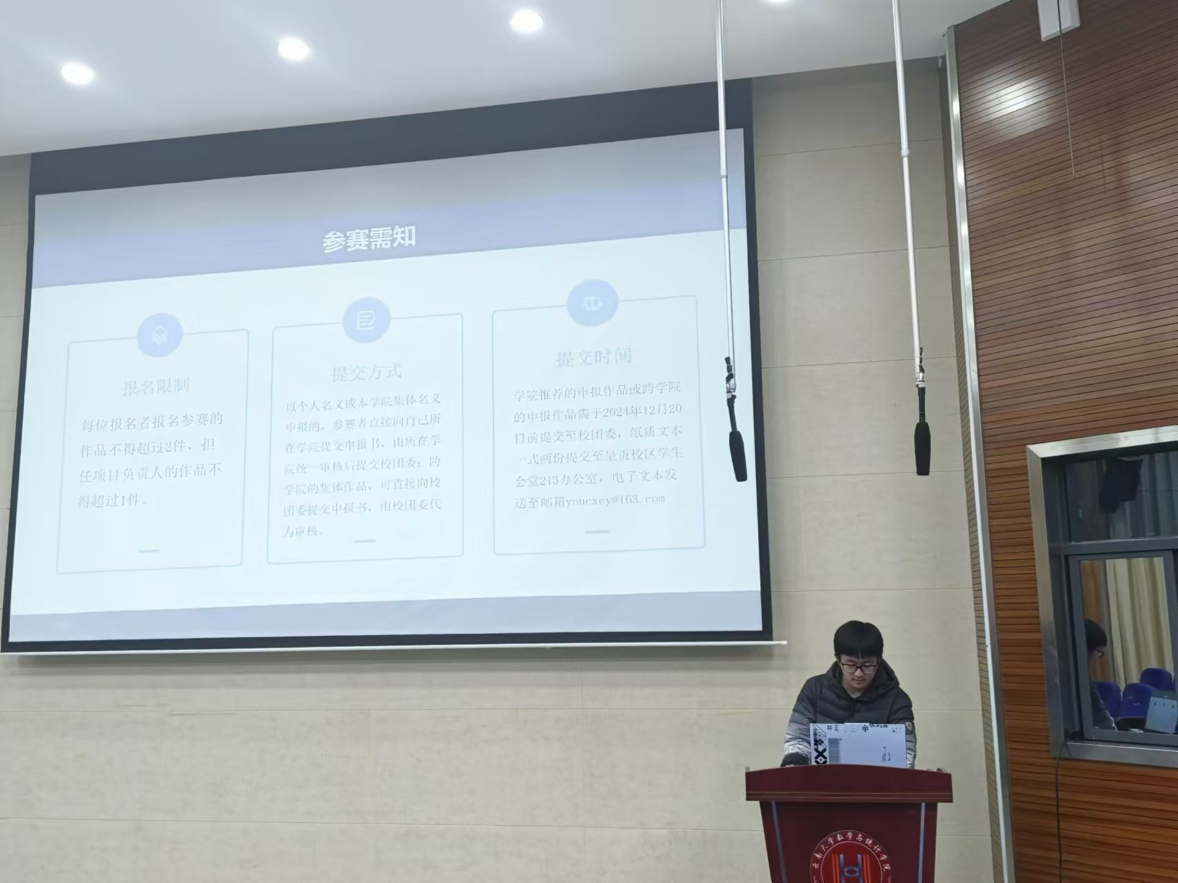 本次活动严格遵循精心设计的“讲解+答疑”框架展开。开场阶段,员工主讲人以沉稳而富有激情的姿态登上讲台,有条不紊地系统梳理“挑战杯”竞赛章程。为了让同学们更直观地理解,主讲人借助精心制作的流程图解,清晰明了地呈现赛事流程与申报要求。在解析自然科学类学术论文、科技发明制作等赛道的评审标准时,主讲人运用丰富的案例,详细剖析每一项评审要点,使得原本晦涩的评审标准变得通俗易懂。