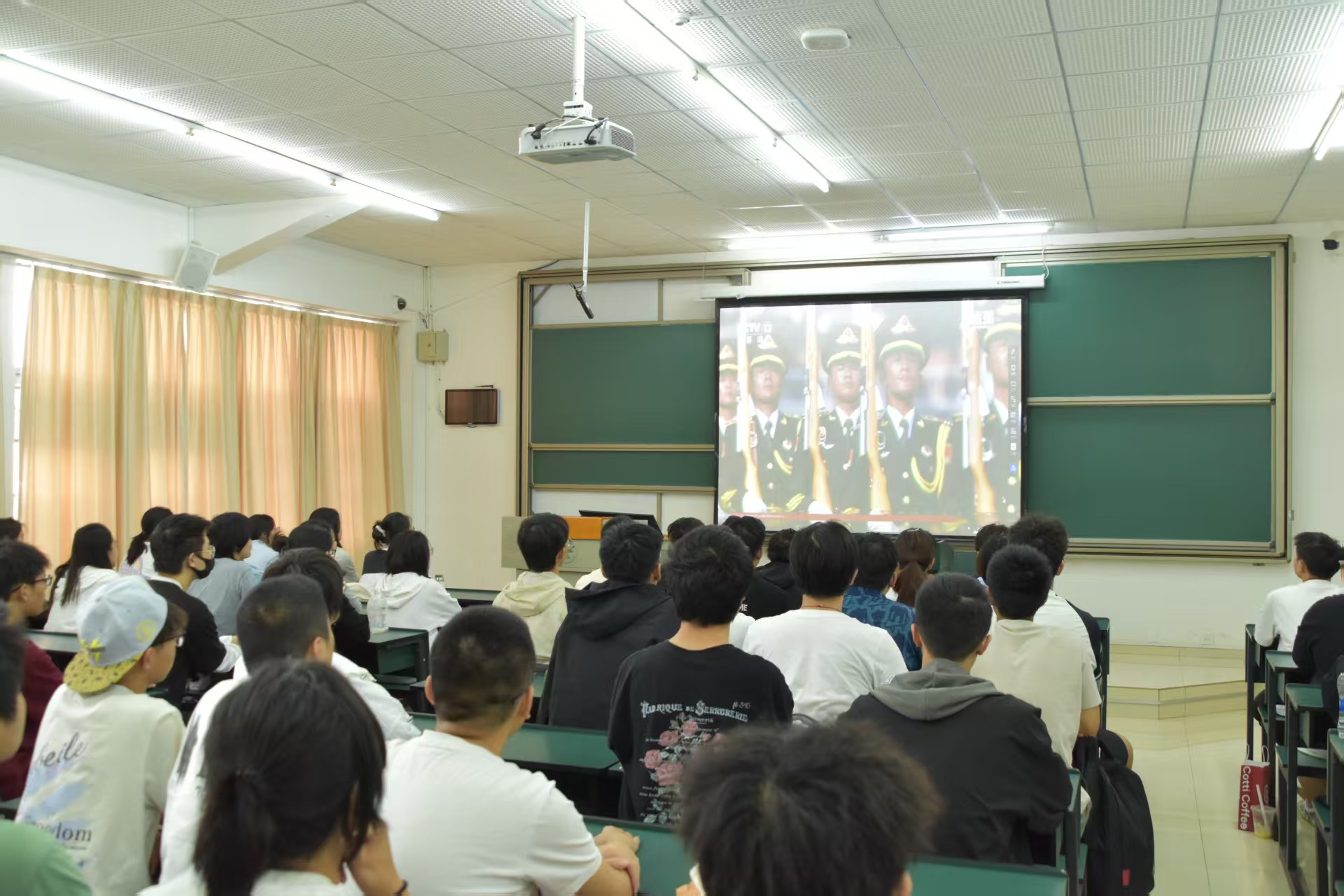 上午9时,期待已久的阅兵仪式正式拉开帷幕。师生们精神抖擞,聚精会神地注视着屏幕,整个会场氛围庄重而热烈。习近平总书记掷地有声的讲话点燃了每一个人的内心。军乐铿锵,步伐坚定,一场盛大的阅兵仪式,既是对那段浴血奋战历史的深情回望,更是向世界宣告中国捍卫和平的坚定决心。在观看直播的过程中,全场师生内心澎湃。