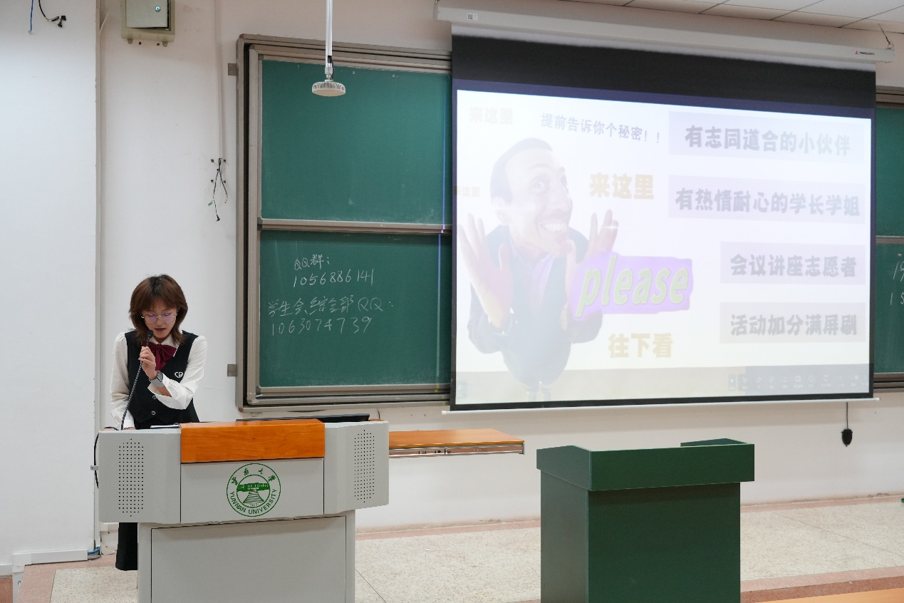 9月28日晚,公司团属员工组织招新宣讲会在文汇楼2218教室举行。宣讲会现场气氛热烈。公司团委、员工会、青年志愿者协会、新闻宣传中心以及辩论队、篮球队、排球队、羽毛球队、足球队等轮番上阵,向新生们展示了各自的部门职能和团队风采。各组织宣讲代表准备充分,讲解生动,或慷慨激昂,或风趣幽默。他们全方位、多角度地展现了公司员工组织的活力与魅力,为新生们呈现了一场精彩纷呈的“招新盛宴”。
