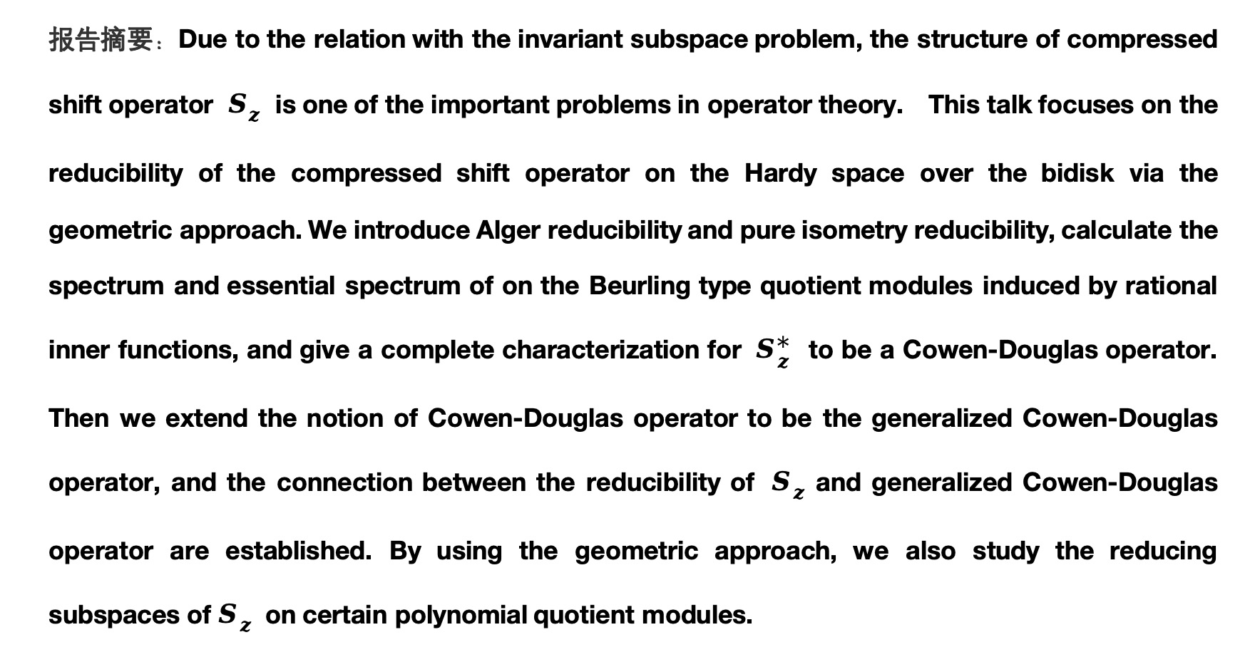 报告题目:A geometric approach to the compressed shift operators on the Hardy space over the bidisk