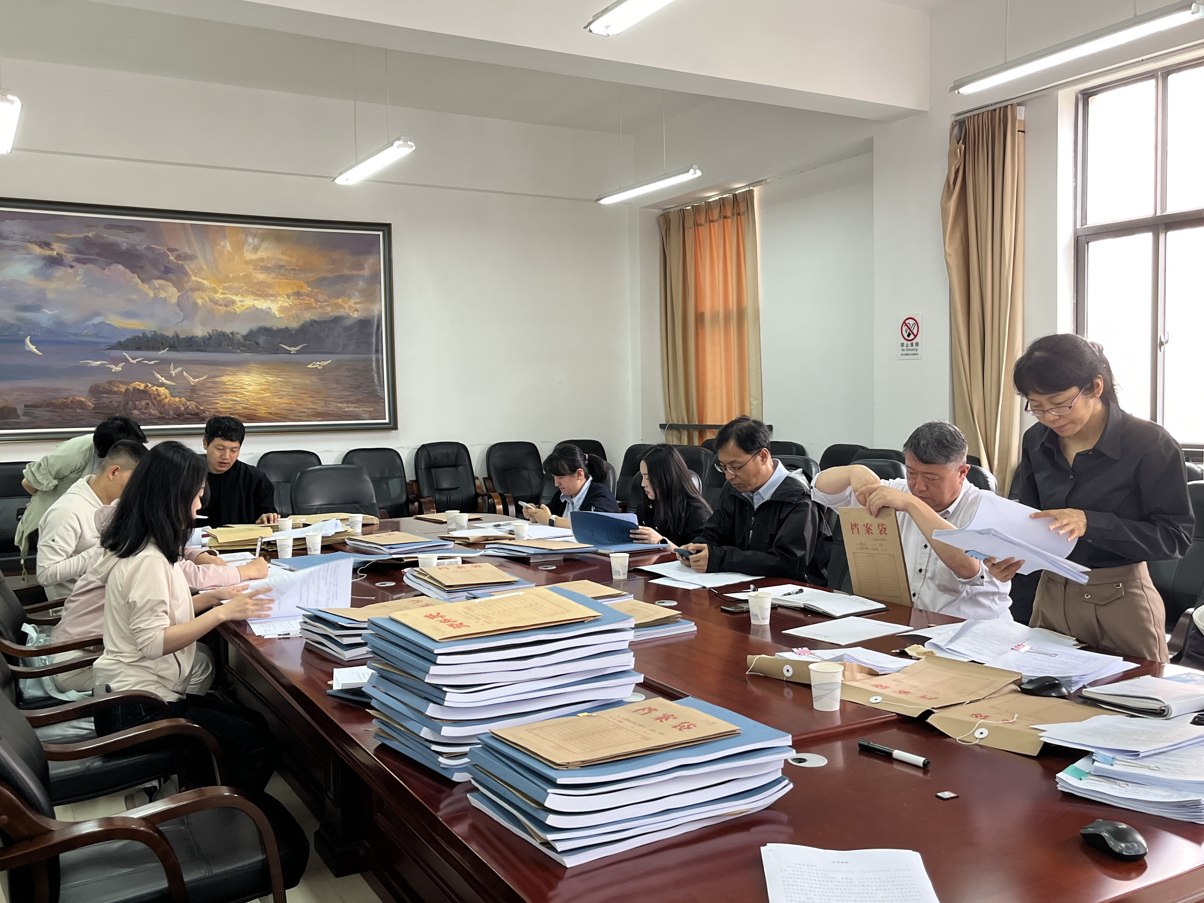 在公司会议室内,检查组对培养方案、试卷和归档材料、课程教学大纲、毕业论文、实习/实训报告等教学材料进行详细检查,对教学文件档案的归档完整性、规范性,对试卷批改、成绩评定和毕业设计等各个环节的教学材料进行认真查阅,对发现的问题逐一详细记录。