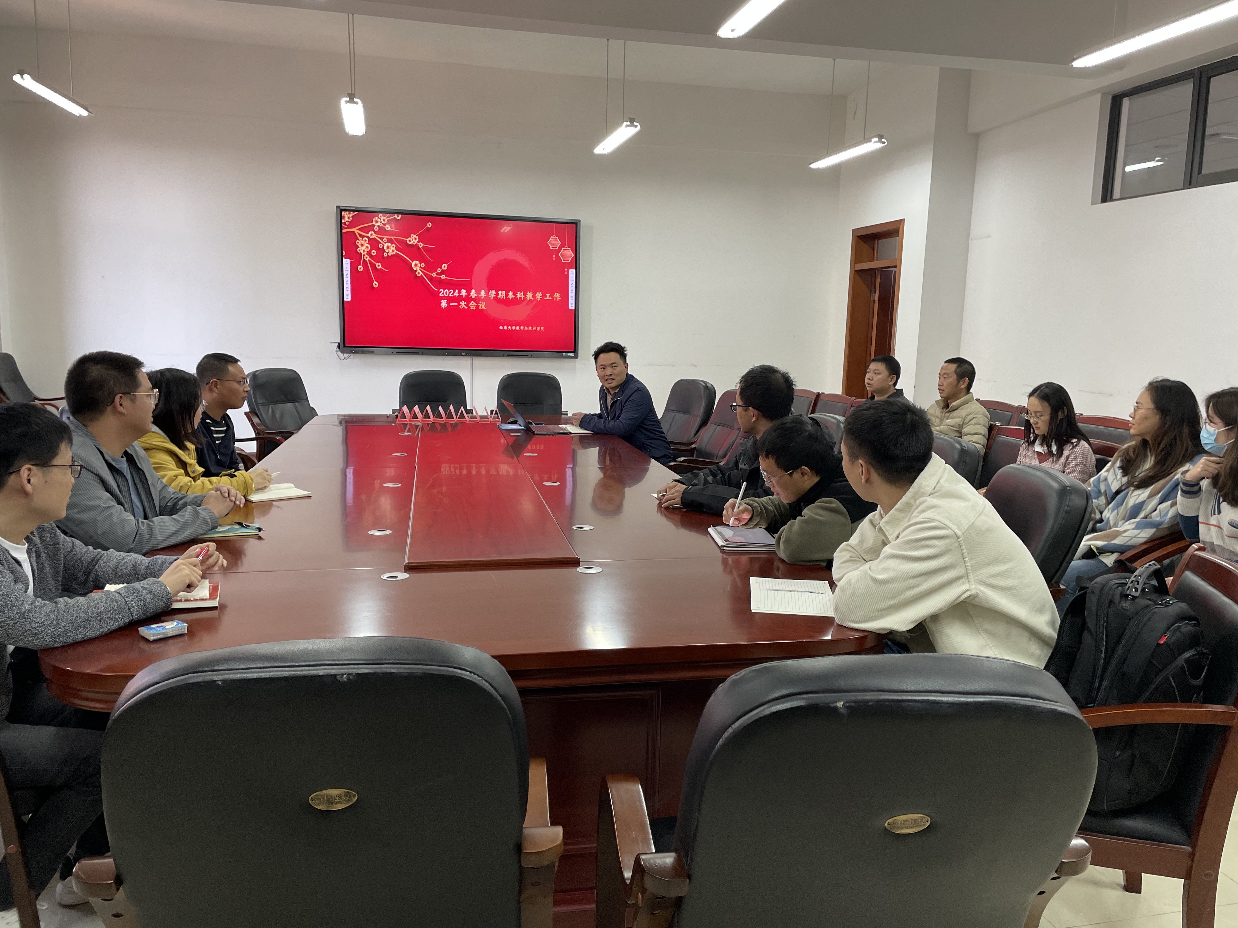 2024年3月1日14:00,数统公司2024年春季学期第一次本科教学工作例会在格物楼3306召开。潘东东副经理、数学系主任李朝迁老师、数学系本科教学秘书娄本功老师、教务员余彬老师、2022-2024年新入职老师(曹蓉君老师、张榕老师、张天伟老师、王晓波老师、代新杰老师、刘超老师、韩博老师等)参加了会议,会议由潘东东副经理主持。